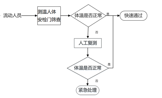 圖3 測(cè)溫人體安檢門方案業(yè)務(wù)流程圖
